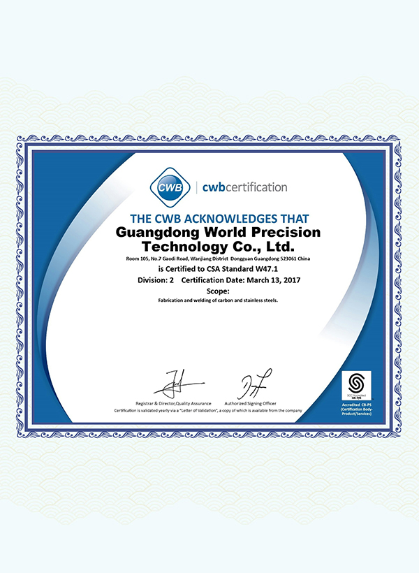 加拿大焊接局認(rèn)證證書